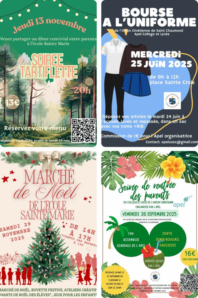 L’Apel de Sainte Marie et l’Apel du collège/lycée se mobilisent pour organiser des événements, des ventes (dîner de parents, kermesse, concert, vente de chocolats et sapins), soutenir les projets de l’établissement et accompagner les parents.